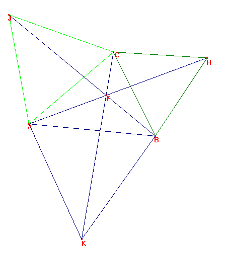 1.- formamos los triángulos equiláteros AB K , BCH, CAJ,