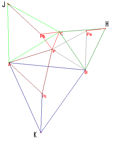 el triángulo BPC se transforma en el BPaH, el CPA se transforma en el CPbJ, y el APB en el APcK.