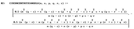 Coordenadas del circuncentro en función de los vértices (m,n)