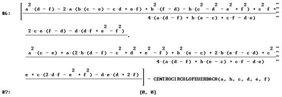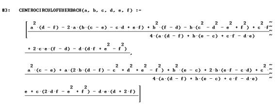 Coordenadas del centro del círculo de Feuerbach en función de los vértices