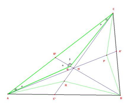 En particular: Si m = 60º, el punto de concurrencia H es el segundo punto de Fermat. c.q.d. (Si el ángulo m coincide con alguno de los ángulos del triángulo ABC el problema carece de sentido y la construcción anterior no sirve.)