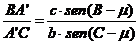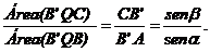 a la razón de las áreas de los triángulos B’QC y B’QA.