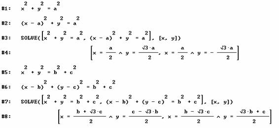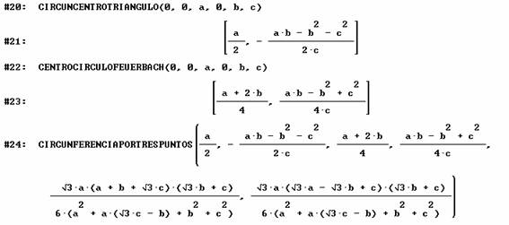 Sea nuestro triángulo de vértices (0,0), (a,0) y (b,c). Utilizamos DERIVE.