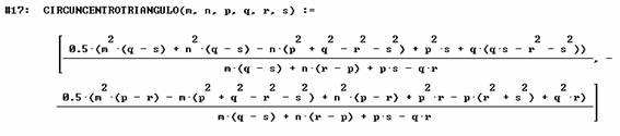 Basándonos en las expresiones que Miguel de Guzmán da en su libro "La experiencia de descubrir en geometría" para el circuncentro