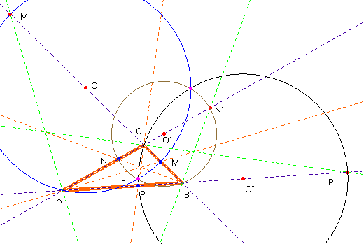 Vamos a dos demostrar que se cortan en únicamente dos puntos: los puntos isodinámicos, I y J. Supongamos que I pertenece a las circunferencias
