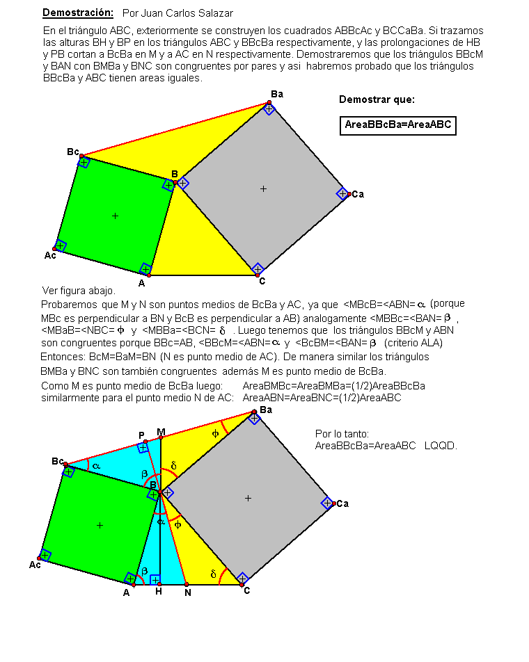 | Sobre cada lado de un triángulo cualquiera se construyen 3 cuadrados