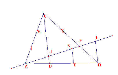 Los triángulos AJD, AKE y ABL son semejantes de razón 2 y 3 respectivamente, luego: