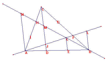 Los triángulos BKE, BMD y BNA son semejantes de razón 2 y 3 respectivamente.