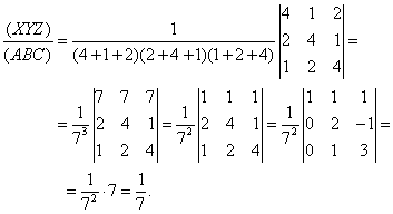 Entonces el área del triángulo (XYZ) en relación al triángulo (ABC) viene dado por