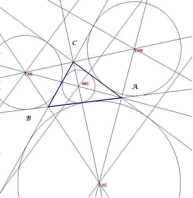 Así, consideremos el primer caso. La recta C INC EXC es bisectriz interior de < ACB, por lo que <A C INC =.< B C INC.