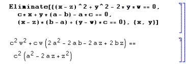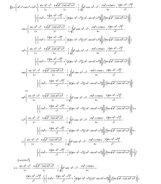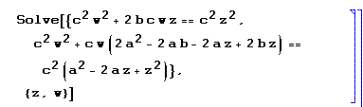 Resolviendo el sistema formado por las dos ecuaciones obtenidas, resultan las coordenadas de z y w en función de a, b y c: