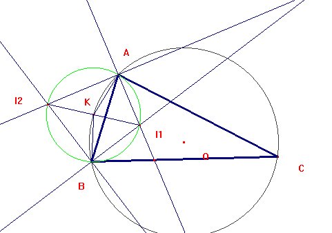 a los vértices A y B. Los puntos I1, A, I2 y B están sobre una circunferencia
