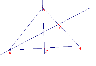 se tiene : (A'B/A'C)(B'C/B'A)(C'A/C'B)= (AB/AC) (BC/BA) (CA/CB)=-1, C.Q.D.