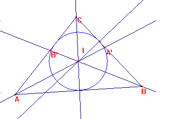 I está situado a la misma distancia de las tres rectas AB, BC y CA, por lo que es el centro de la