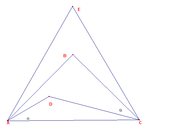 Si trazamos el triángulo equilátero ACE de manera que tenga en su interior a ABC, tenemos: