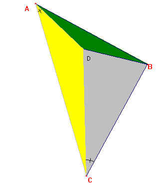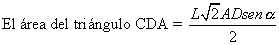 Por otra parte esa misma área se pude calcular utilizando los lados AD y AC quedando