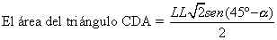El área del triángulo BCD = ( L2)sen a /2 ;