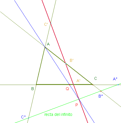 infinito corta a los lados del triángulo (o a sus prolongaciones) en los puntos