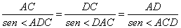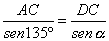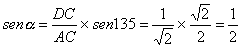α) – α = 180 – 45 = 135ºLo que queda por probar es que en el triángulo ADC el ángulo DAC es de 30º. Ésto se puede hacer, puesto que ese triángulo está completamente definido, pues conocemos el valor de un ángulo ( < CDA = 135º) y el valor o la relación entre dos lados, por ejemplo CD = 1 y CA =