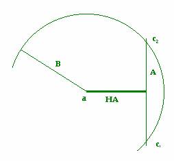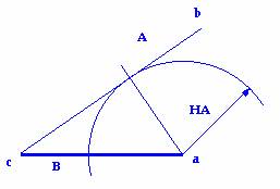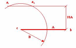 a, se hace una circunferencia de radio Ha, y desde el otro vértice se traza