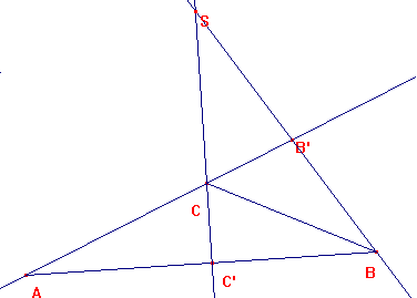 Si C C` y BB' se cortan sobre un punto S, y unimos A con S,