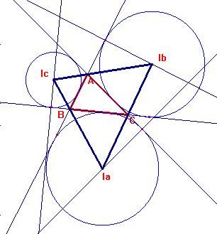Otros cuatro se establecen sobre un cuadrángulo ortocéntrico El Incentro en el medio, con los excentros alrededor