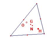Cuatro centros están en la línea de Euler Están relacionados en un orden estricto Con N a medio camino entre O y H Y G en la tercera parte.