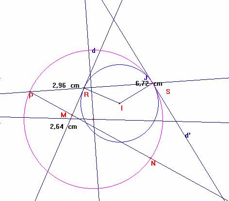 Así, concluimos: Cuando M describe d, N describe T, tangente a J en S. La recta d’ es tangente común en S a J y T.
