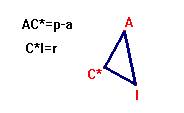 Con los segmentos p-a y r como catetos, construimos el triángulo rectángulo AC*I como sigue:
