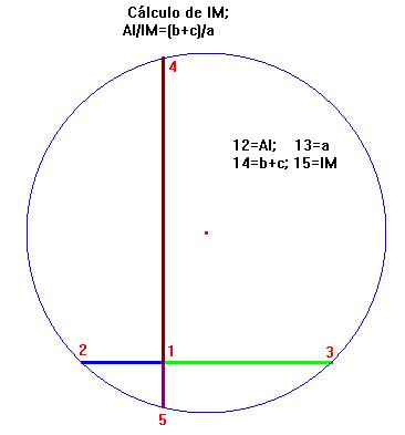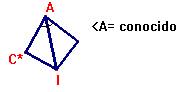 y así, junto a su imagen simétrica respecto de AI, obtenemos tanto el valor del ángulo <A como la longitud del lado AI. |