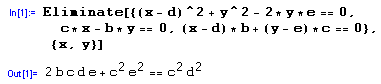 Eliminado x e y en esas tres ecuaciones se obtiene la ecuación