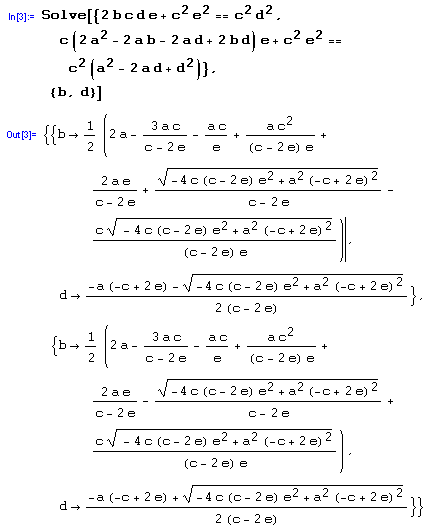 Resolviendo el sistema formado por las dos ecuaciones obtenidas, resultan las coordenadas de b y d en función de los datos conocidos, a, c y e: