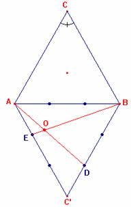 y como BE (prolongación de BO) corta al lado AC’ dividiéndolo en dos partes una