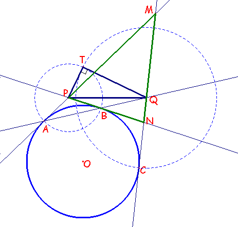 La tangente por C corta a la recta AB en Q. Mostrar que PQ2 = PB2 + QC2