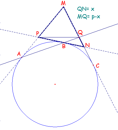 (s: semiperímetro del triángulo MNP; 2s= m+n+p) MA= s AP= PB BN= s- p NQ= x QM= p- x |