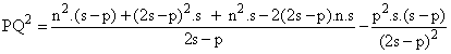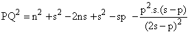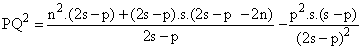 m2 = (2s- p)2 + n2 - 2× (2s- p)× n
