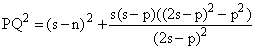 Ahora bien, por el Teorema de Stewart podemos encontrar PQ2.