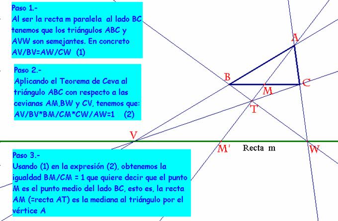 recta AT contiene a la mediana al triángulo por el vértice A.