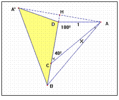 y por tanto AB = BA’ = 2cos10 =AA’, lo que significa que el triángulo ABA’ es equilátero y sus ángulos miden 60º sexag. Â= 60º =X + 40º + 10º y de aquí X = 10º