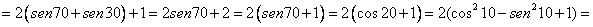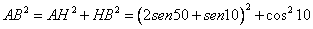 El segmento BH es por construcción la altura del triángulo ABA’, y su valor es BD + DH = 2 sen50 + sen10.