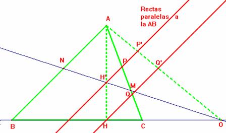 Para ver esto, tracemos dos rectas paralelas a la recta AB por los puntos