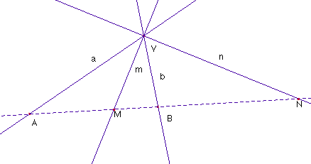 lo cual es equivalente a sen (a-b) = 0, de ahí que a = b. Así pues, m y n son bisectrices de a y b.