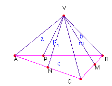puntos M, N y P, cada uno alineado con dos vértices y otro punto