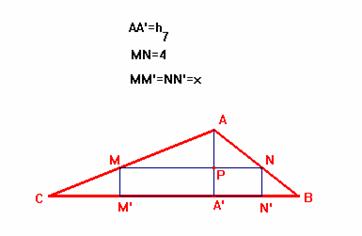Si ahora "unimos" en MºN los dos triángulos MM'C y NN'B obtenemos un triángulo semejante al inicial ABC, de modo que se verificará