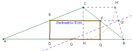 Para determinar el de perímetro 8 cm., llevamos sobre la base AB el