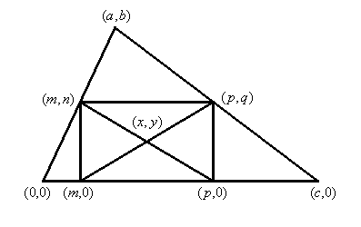 | Hallar el lugar geométrico de los centros de los rectángulos inscritos en un triángulo de lados 7 cm, 5 cm, y 3 cm. |