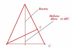 Al igual que en el apartado b vuelve a ser falso y esa propiedad solamente se cumple para los triángulos isósceles o equiláteros, y dicha mediatriz coincide no sólo con la bisectriz sino también con la altura.