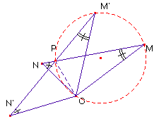 M y M’ están en el arco capaz de OP y ángulo d. Del mismo modo con el ángulo f = áng.(ONM)=áng.(ON’M’)