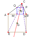 Solución de Saturnino Campo Ruiz, profesor de Matemáticas del I.E.S. Fray Luis de León (Salamanca) (10 de mayo de 2003) - En la figura adjunta podemos observar como el centro F del cuadrado inscrito en ABC, y el centro G del construido exteriormente, tomando como lado AB están alineados; es evidente, pues estos cuadrados son homotéticos, siendo C el centro de la homotecia.