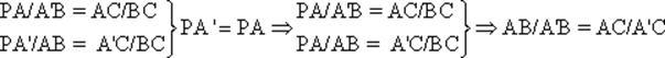 Trazando la paralela al lado AB por el punto A', obtenemos los triángulos semejantes PA'C y ABC, con PA'=PA, por ser PA'A triángulo isósceles, con ángulos iguales en A y A'.